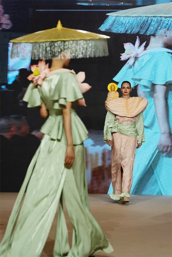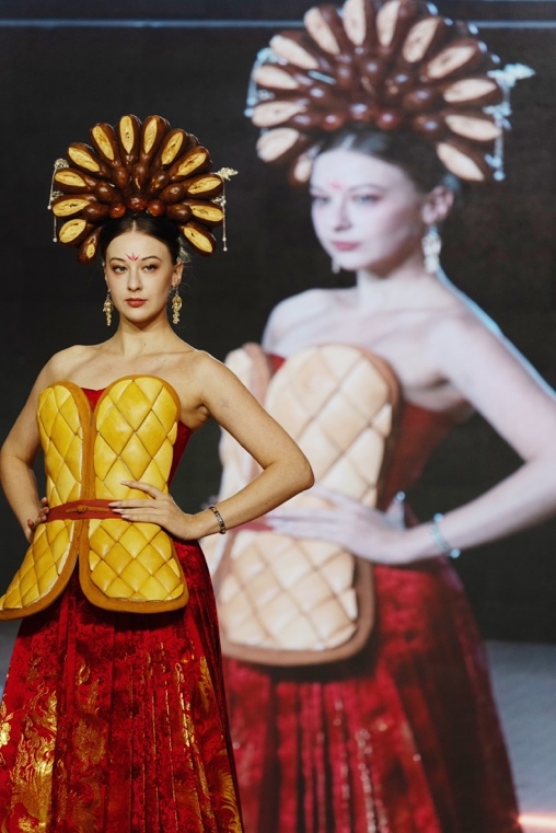 本次跨界秀场,将中国传统元素和非遗时尚结合,用高定时装承载工艺,用面包、巧克力构筑时尚细节。希望能够唤醒人们内心深处的民族文化骄傲感,将从容自信的中国之美转述成世界性的时尚表达,领略非遗文化极致璀璨的艺术魅力。