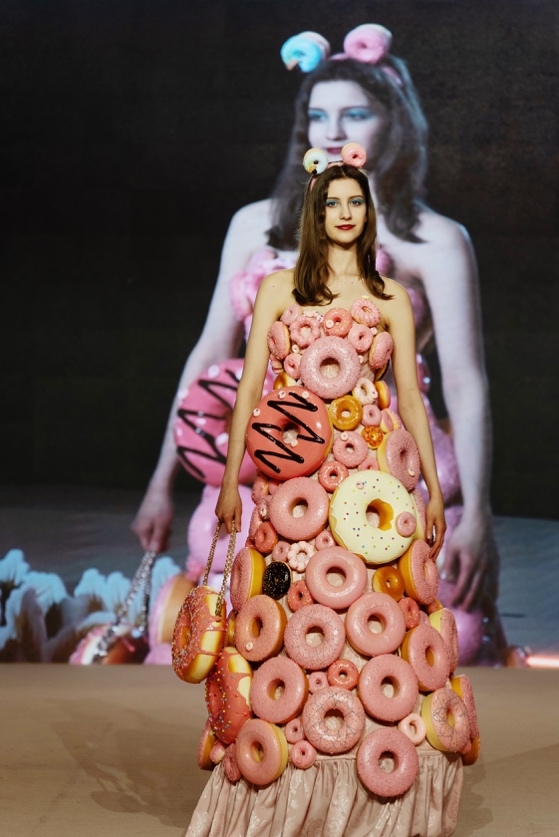 秀场呈现“面包”和“巧克力”两个主题, 13套高定艺术时装现场演绎。