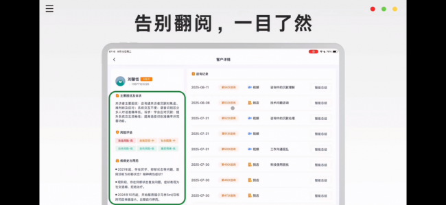 过去,咨询师面对零散混乱的历史记录,需要耗费大量时间整理。现在,咨询师驾驶舱的AI能力将所有信息智能整合,生成一目了然的客户档案。咨询师可以彻底告别繁琐的翻阅,快速洞察来访者背景,高效进入咨询状态。
