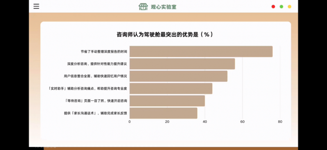 数据显示,咨询师最认可驾驶舱的价值依次是:节省手动整理报告的时间、深度分析能力、信息整合能力——这正是我们精准解决了行业核心痛点的证明。